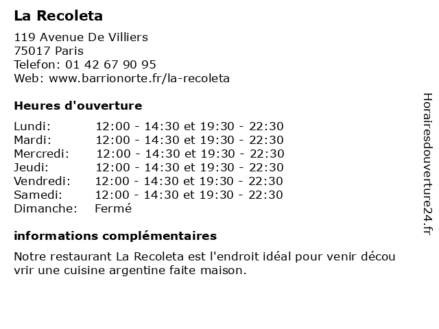 | Jeudi | 12:00-14:30 et 19:30-22:30 |