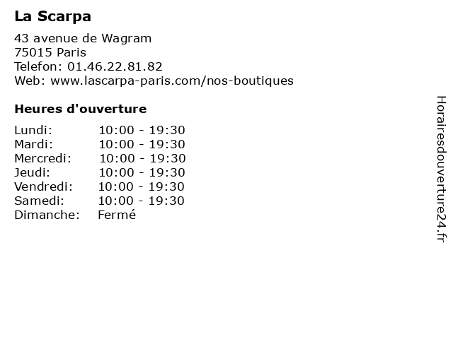 | Samedi | 10:00-19:30 |