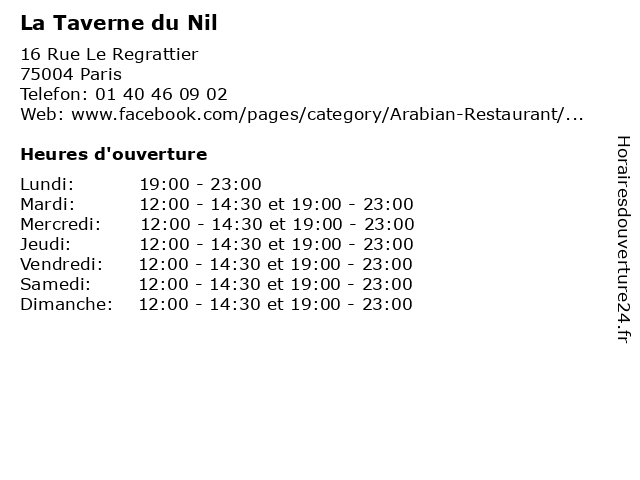 | Mercredi | 12:00-14:30 et 19:00-23:00 |