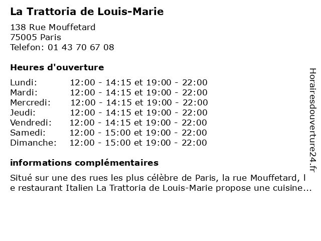 Termes de recherche pour La Trattoria de Louis-Marie:la, de, marie, louis, restaurants, trattoria, restaurant familial |