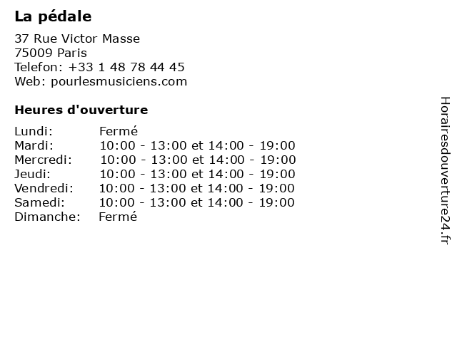 | Mercredi | 10:00-13:00 et 14:00-19:00 |