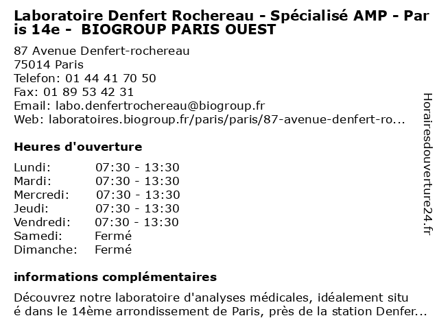 Termes de recherche pour Laboratoire Denfert Rochereau - Spécialisé AMP - Paris 14e - BIOGROUP PARIS OUEST:paris, laboratoire, ouest, 14e, rochereau, denfert, amp, spécialisé, biogroup, dépistages, laboratoire de diagnostic |