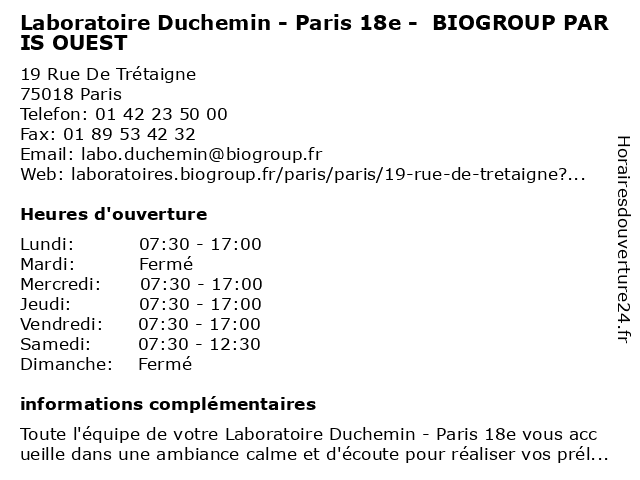 Termes de recherche pour Laboratoire Duchemin - Paris 18e - BIOGROUP PARIS OUEST:paris, laboratoire, ouest, 18e, duchemin, biogroup, dépistages, laboratoire de diagnostic |