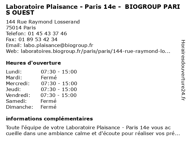 Termes de recherche pour Laboratoire Plaisance - Paris 14e - BIOGROUP PARIS OUEST:paris, laboratoire, ouest, plaisance, 14e, biogroup, dépistages, laboratoire de diagnostic |