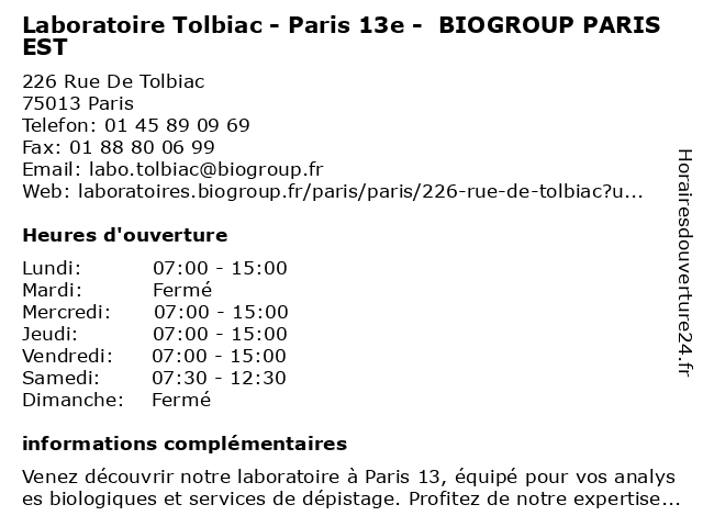 Termes de recherche pour Laboratoire Tolbiac - Paris 13e - BIOGROUP PARIS EST:paris, laboratoire, est, tolbiac, 13e, biogroup, dépistages, laboratoire de diagnostic |