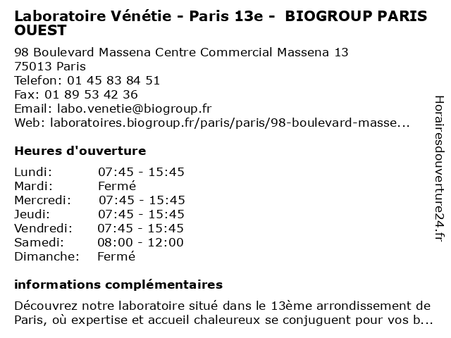 Termes de recherche pour Laboratoire Vénétie - Paris 13e - BIOGROUP PARIS OUEST:paris, laboratoire, ouest, venetie, 13e, biogroup, dépistages, laboratoire de diagnostic |