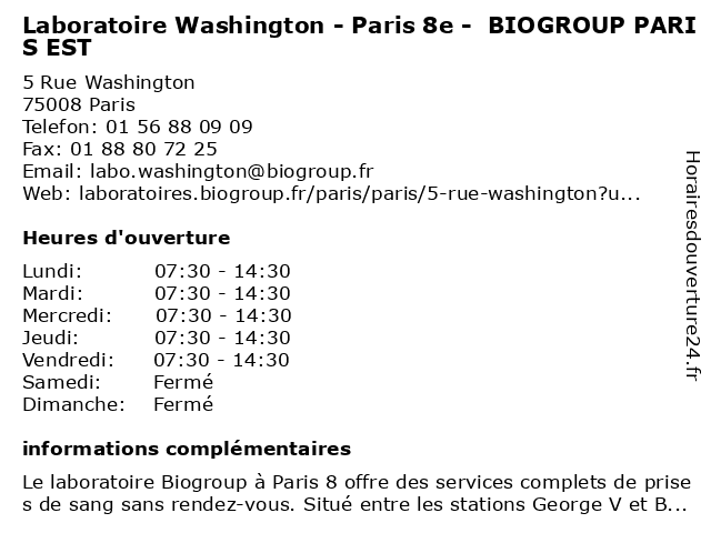 Termes de recherche pour Laboratoire Washington - Paris 8e - BIOGROUP PARIS EST:paris, laboratoire, est, washington, 8e, biogroup, dépistages, laboratoire de diagnostic |
