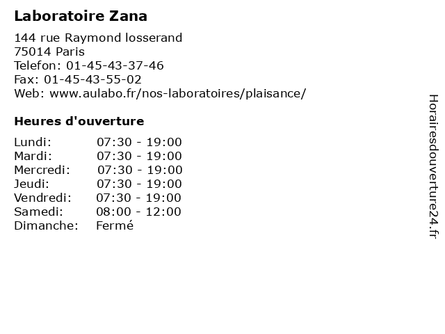 1 Laboratoire Zana (Distance: 7,14 km) 19 Trétaigne, 75018 Paris analyse par rayons x, détection, examenenes de laboratoire, laboratoire, zana 2 Laboratoire Plaisance - Paris 14e - BIOGROUP PARIS OUEST (Distance: 0,01 km) 144 Rue Raymond Losserand, 75014 Paris 14e, biogroup, dépistages, laboratoire, laboratoire de diagnostic, ouest, paris, plaisance 4 Laboratoire CBCV (Distance: 0,72 km) 20 Rue de Vouillé, 75015 Paris bureau, cbcv, consultation, dr, laboratoire, maladie, med, médecin, médecine, pratique, thérapie, traitement 5 Lcpp Laboratoire Central Pref De Police (Distance: 1,10 km) Lcpp Laboratoire Central Pref De Polic, 75015 Paris central, laboratoire, lcpp, paris, police, policière, pref, prefecture, protection 6 Laboratoire de Biologie Médicale - Volontaires - Cerballiance (Distance: 1,19 km) 209 Rue De Vaugirard, 75015 Paris biologie, cerballiance, de, dépistages, laboratoire, médicale, volontaires |