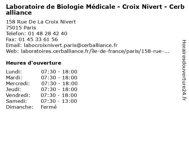 1 Pharmacie Convention Croix-Nivert (Distance: 0,09 km) 131 Rue de la Convention, 75015 Paris convention, croix, la médecine, la pharmacie, la santé, les soins, nivert, pharmacie 2 Dr Prescilla Pais - Gynécologue médicale et obstétrique (Distance: 0,15 km) 37 Avenue Félix Faure, 75015 Paris docteur, dr, et, gynecologue, gynécologue, médicale, obstretricien, obstétrique, pais, prescilla, sante 3 Tennis Croix Nivert (Distance: 0,34 km) 107 Rue de la Croix-Nivert, 75015 Paris croix, equipement, l'heure, livre, médiathèque, nivert, services, tennis 4 Laboratoire Auditif Athuil (Distance: 0,46 km) 8 Place du Commerce, 75015 Paris athuil, auditif, laboratoire 5 Accolab Laboratoire Lavergne (Distance: 0,57 km) 73 Rue de Lourmel, 75015 Paris accolab, biologistes, examens, laboratoire, lavergne, pathologie 6 Laboratoire Croix Nivert - Paris 15e - BIOGROUP PARIS OUEST (Distance: 0,68 km) 237 Rue De La Croix Nivert, 75015 Paris 15e, biogroup, croix, dépistages, laboratoire, laboratoire de diagnostic, nivert, ouest, paris |