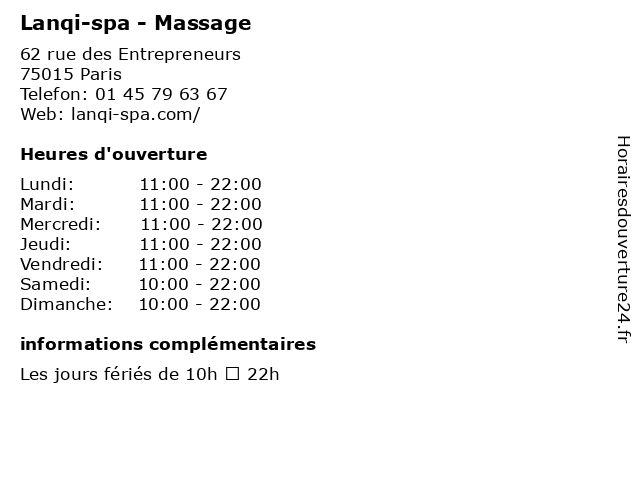 3 Salon Massage Paris 15eme (Distance: 0,59 km) 29 Rue Mademoiselle, 75015 Paris 15eme, massage, paris, salon 4 Gabriel Laurent - Salon de massage (Distance: 0,66 km) 25 Quai André Citroen, 75015 Paris bien-etre, de, gabriel, laurent, massage, massages, relax, salon, sante 5 Chunmei massage relaxation (Distance: 0,69 km) 35 rue duranton, 75015 Paris chunmei, massage, relaxation, soins, spa 6  |