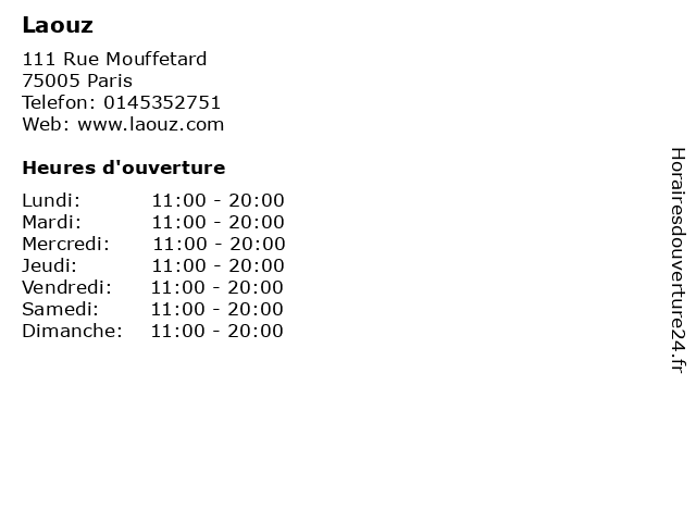 | Vendredi | 11:00-20:00 |