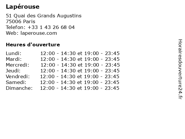 | Mardi | 12:00-14:30 et 19:00-23:45 |