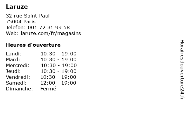 | Lundi | 10:30-19:00 |