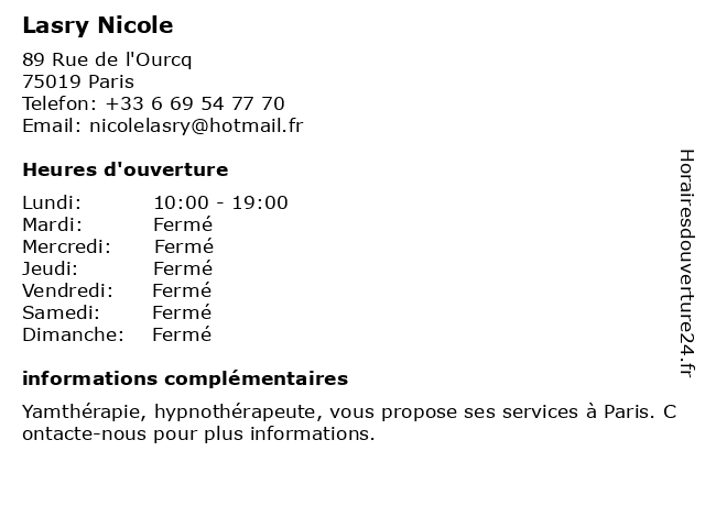 1 Dr Nicole Dardel - Médecin généraliste (Distance: 0,14 km) 1 Rue Colette Magny, 75019 Paris consultation, dardel, docteur, dr, généraliste, med, médecin, médecine, nicole, secrétariat, traitement 2 Medecin Nicole Edmond (Médecin généraliste) (Distance: 1,90 km) 64B Rue de la Commune-de-Paris, 93300 Aubervilliers docteur, edmond, généraliste, medecin, médecin, nicole, sante, services 3 Nicole Robberechts - Psychologue (Distance: 3,47 km) 256 Rue Marcadet, 75018 Paris folie, nicole, psychiatre, psychiatrie, psychiatrique, psychologue, robberechts 4 Dr Johanna Lasry- Chirurgien-dentiste (Distance: 4,53 km) 10 Rue des Batelers, 93400 Saint-Ouen chirurgien, consultation, dentiste, docteur, dr, johanna, lasry, med, médecin, médecine, traitement 5 Dr Lasry Willy - Chirurgien-dentiste (Distance: 5,81 km) 117 Rue de Courcelles, 75017 Paris chirurgien, dentaire, dentiste, dr, implantologie, lasry, parodontologie, willy 6 Veronique lasry - Psychologue (Distance: 6,79 km) 54 Quai Charles Pasqua, 92110 Levallois-Perret folie, lasry, psychiatre, psychiatrie, psychiatrique, psychologue, veronique |