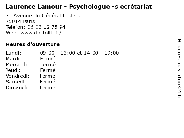 Termes de recherche pour Laurence Lamour - Psychologue -s ecrétariat:laurence, secretariat, médecins, lamour, psychologue, thérapies, cabinets, ecrétariat |