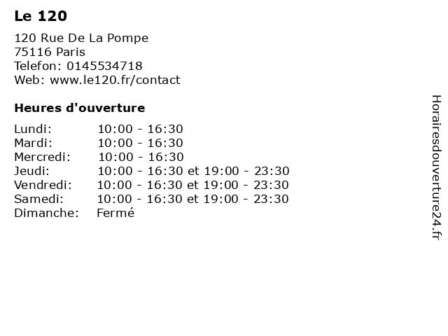 | Lundi | 10:00-16:30 |