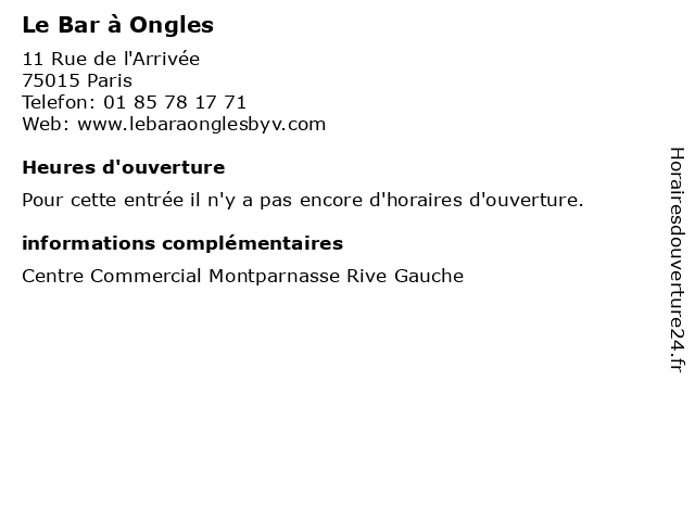 1 Le Bar à Ongles (Distance: 5,84 km) 31 Rue d'Alsace, 92300 Levallois-Perret bar, beauté, centre, formation, le, manucure, onglerie, ongles 2 Le Bar à Ongles (Distance: 12,41 km) 50 Avenue du Maréchal Foch, 95100 Argenteuil bar, beauté, centre, formation, le, manucure, onglerie, ongles 3 Le bar à ongles (Distance: 17,82 km) 85 Route de Provins, 94490 Ormesson sur Marne bar, le, magasins, ongles 4 Le 48 Bar (Distance: 0,22 km) 48 Rue du Montparnasse, 75014 Paris 48, alcool, bar, club, cocktail, le, restauration 5 Le bar à ongles... by V - Montparnasse (Distance: 0,32 km) 17 Boulevard de Vaugirard, 75015 Paris bar, by, faux ongles paris, l'onglerie paris, le, manucure paris, montparnasse, onglerie paris, ongles..., paris, pose de faux ongles paris, prothesiste ongulaire paris, salon de manucureparis, vernis semi permanent paris 6 N'Colors Nail Bar (Distance: 0,32 km) 5 rue Littré, 75006 Paris bar, beauté, esthétique, manucure, n'colors, nail, salon, spa |