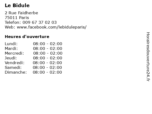 | Dimanche | 08:00-02:00 |