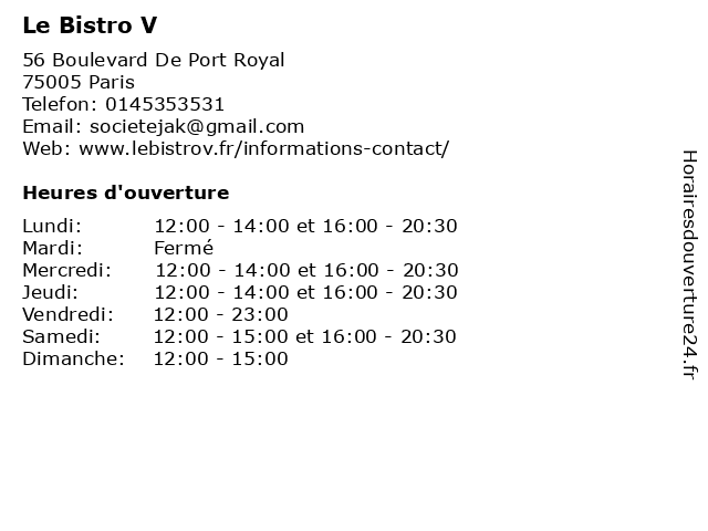 | Samedi | 12:00-15:00 et 16:00-20:30 |
