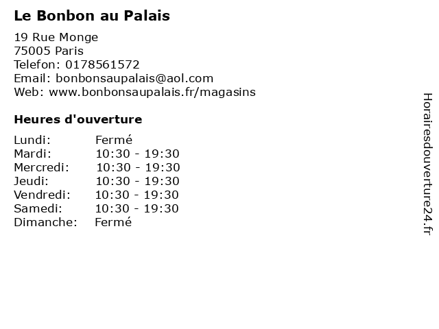 | Lundi | Fermé |