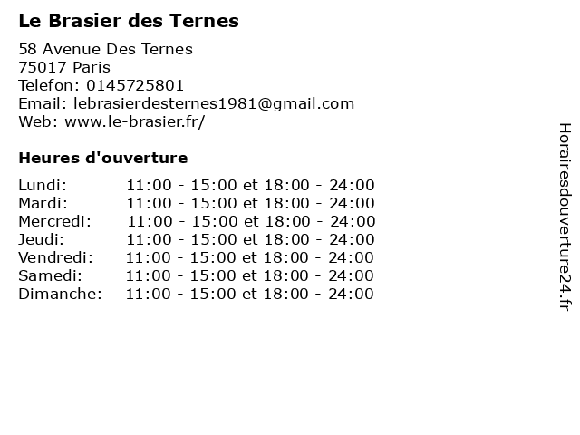 | Mardi | 11:00-15:00 et 18:00-24:00 |