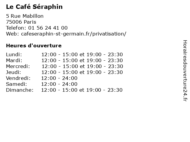 | Mardi | 12:00-15:00 et 19:00-23:30 |