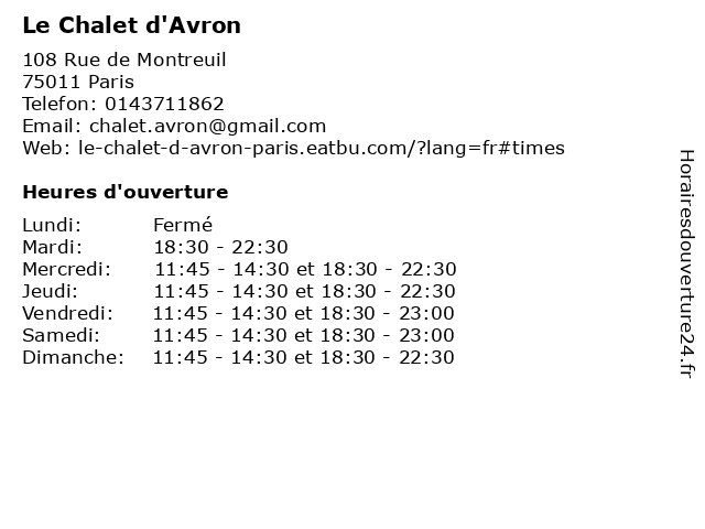 | Dimanche | 11:45-14:30 et 18:30-22:30 |