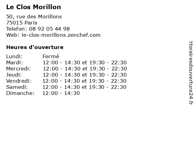 1 Square du Clos-Feuquières (Du 29 octobre au 28 février) (Distance: 1,04 km) 30 rue Desnouettes, 75015 Paris 28, 29, au, clos, du, feuquières, février, jardin, octobre, parc, square 2 Square du Clos-Feuquières (Du 01 au 24 mars) (Distance: 1,04 km) 30 rue Desnouettes, 75015 Paris 01, 24, au, clos, du, feuquières, jardin, mars, parc, square 3 Square du Clos-Feuquières (Du 25 mars au 29 avril et septembre) (Distance: 1,04 km) 30 rue Desnouettes, 75015 Paris 25, 29, au, avril, clos, du, et, feuquières, jardin, mars, parc, septembre, square 4 Square du Clos-Feuquières (Du 30 avril au 31 août) (Distance: 1,04 km) 30 rue Desnouettes, 75015 Paris 30, 31, août, au, avril, clos, du, feuquières, jardin, parc, square 5 Luggage Storage Clos Feuquières - Radical Storage (Distance: 1,05 km) 27 Rue Desnouettes, 75015 Paris clos, feuquières, luggage, luggage storage, luggage storage near me, radical, storage 6 Hotel le Clos d'Alesia (Distance: 1,68 km) 8 Rue Friant, 75014 Paris bar, chambres, clos, d'alesia, hotel, le, restaurant  |