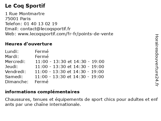 1 Le Coq Sportif (Distance: 0,27 km) 11 Rue Tiquetonne, 75002 Paris coq, enfants, femme, homme, jeans, le, pantalons, sportif, tendances, vestes, vetements 2 Le Coq Sportif (Distance: 1,34 km) 121 Boulevard Saint Germain, 75006 Paris coq, enfants, femme, flagship, homme, jeans, le, pantalons, sportif, tendances, vestes, vetements 3 Le Coq Sportif (Distance: 1,77 km) 50-56 Rue Caumartin, 75009 Paris coq, enfants, femme, homme, jeans, le, pantalons, sportif, tendances, vestes, vetements 4 Le Coq Sportif (Distance: 6,79 km) 9 Quai du Chatelier, 93450 L'Ile Saint Denis beaute, chaussures, coq, le, lingerie, mode enfants, mode femmes, mode hommes, sport, sportif 5 Le Coq Sportif (Distance: 8,55 km) 15 Parvis de la Défense, 92092 Paris La Défense centre, commercial, coq, defense, la, le, les, paris, sportif, temps 6 Le Coq Sportif (Distance: 17,25 km) 395 Rue du Général Leclerc, 95130 Franconville cafe, chaussures, coq, enfants, homme, le, mode femme, parfumeries, restaurant, servicies, sport, sportif |