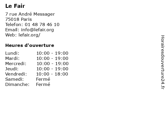 | Samedi | Fermé |