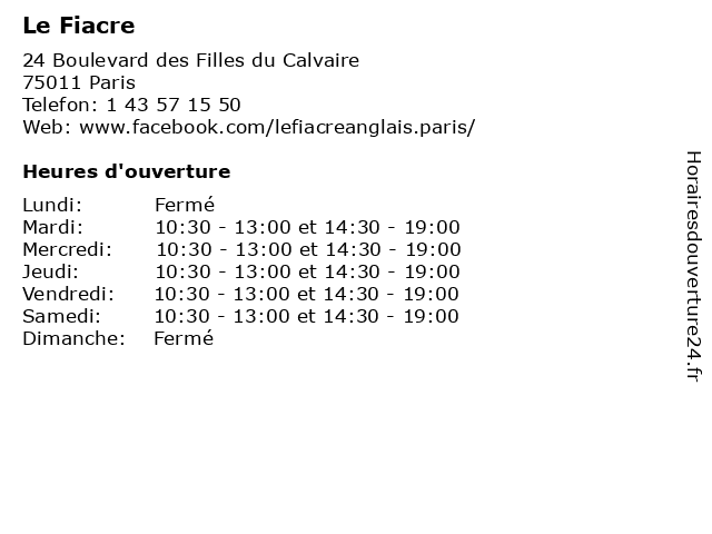 | Lundi | Fermé |
