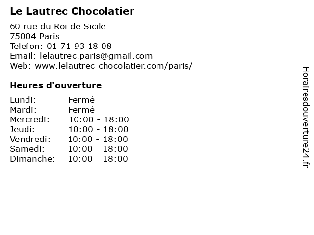 | Lundi | Fermé |
