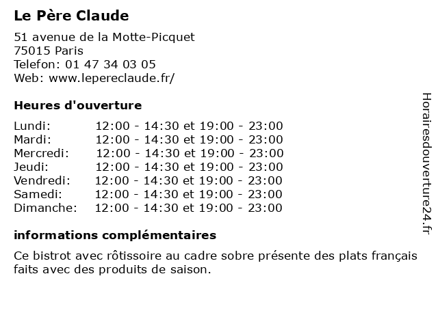 | Dimanche | 12:00-14:30 et 19:00-23:00 |