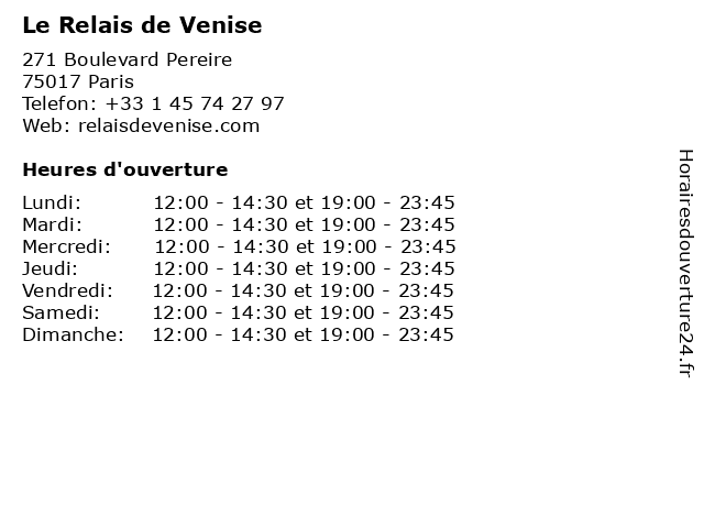 | Mardi | 12:00-14:30 et 19:00-23:45 |