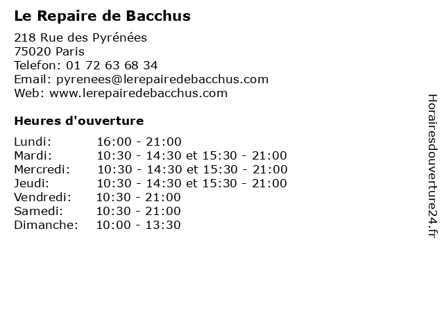 | Mardi | 10:30-14:30 et 15:30-21:00 |