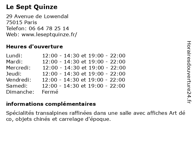 Termes de recherche pour Le Sept Quinze:restauration, restaurant, café, le, bar, bistrot, brasserie, bistro, sept, quinze |