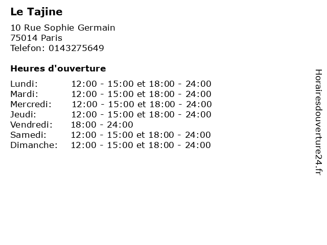 | Mardi | 12:00-15:00 et 18:00-24:00 |