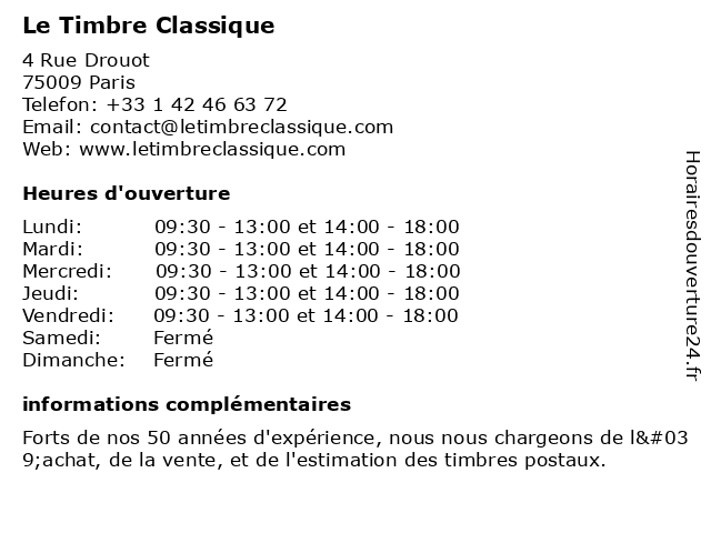 | Lundi | 09:30-13:00 et 14:00-18:00 |