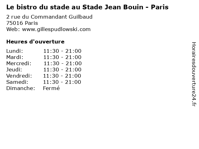 Termes de recherche pour Le bistro du stade au Stade Jean Bouin - Paris:restaurant, du, le, paris, jean, au, boulangers, cafés, bistro, stade, fromagers, patisseries, bouin, epiceries |