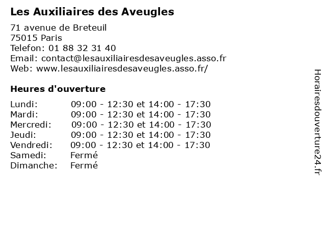 | Mardi | 09:00-12:30 et 14:00-17:30 |