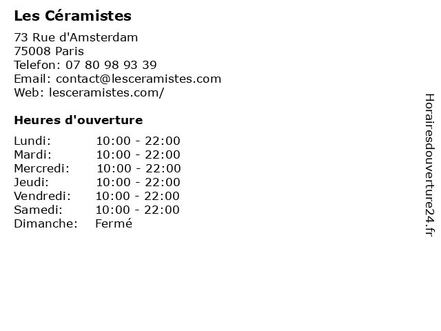 | Samedi | 10:00-22:00 |