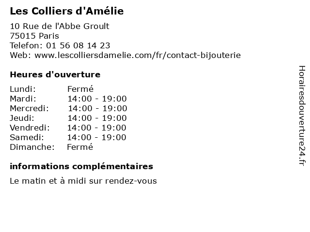 | Samedi | 14:00-19:00 |