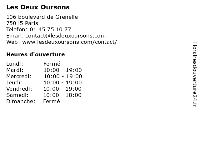 | Lundi | Fermé |