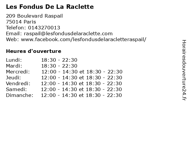 | Dimanche | 12:00-14:30 et 18:30-22:30 |