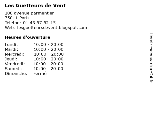 | Mercredi | 10:00-20:00 |