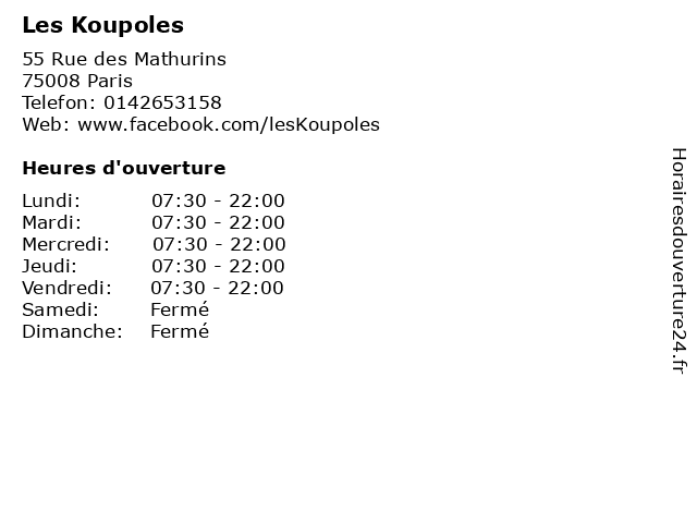 1 Les Koupoles (Distance: 0,00 km) 55 Rue des Mathurins, 75008 Paris bar, bistro, bistrot, brasserie, café, koupoles, les, pub, restaurant, restauration, resto 2 Bistrot Favart (Distance: 1,21 km) 1 rue Favart, 75002 Paris bar, bistrot, brasserie, cafe, cuisine française, favart, restaurant 3 Bistrot Dupleix (Distance: 3,33 km) 62 boulevard Grenelle, 75015 PARIS bar, bistrot, brasserie, cafe, cuisine française, dupleix, restaurant 4 Brasserie Les Docks (Distance: 5,19 km) 23 Rue Madeleine Vionnet, 93300 Aubervilliers alimentation, beauté & sante, brasserie, culture & loisirs, docks, enfants, high-tech, les, maison & déco, mode, restaurants 5 La Brasserie de la Mer au Soleil (Distance: 14,33 km) 101 Avenue du Général de Gaulle, 94012 Creteil alimentation, au, beauté & santé, brasserie, culture & loisirs, de, enfants, high-tech, la, maison & déco, mer, mode, restaurants, soleil 6 Auchan Drive (Distance: 45,64 km) 110 Avenue de l'Europe, 60180 Nogent sur Oise auchan, beaute, boutiques, brasserie, cache, chaussures, concorde, deco, drive, enfants, le, mode femme, mode hommes, restaurant, rocher, sport |