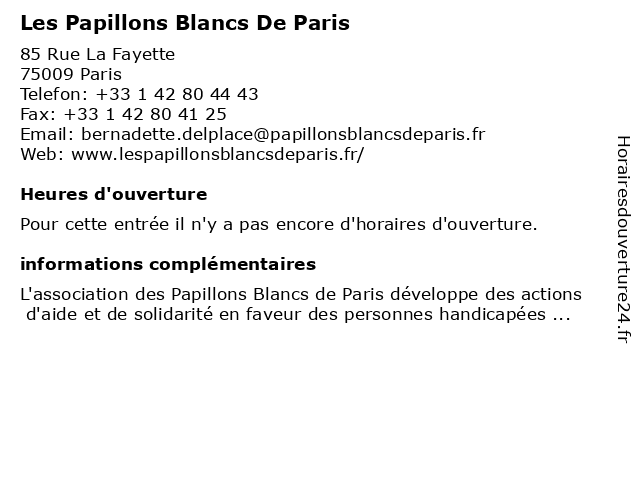 1 Papillons & Co (Distance: 0,91 km) 12 Boulevard Haussmann, 75009 Paris bar-salon, boulangeries, boutique de desserts, brasserie, café, café-restaurant, co, disc jockey, papillons, restaurant méditerranéen, restaurants 2 Campus Voltaire (Examens blancs) (Distance: 2,07 km) 35 boulevard Voltaire, 75011 Paris auto / moto, blancs, campus, ecole, entraînement, examens, services, voltaire 3 Crèche Municipale des Blancs Manteaux (Distance: 2,11 km) 21 Rue des Blancs Manteaux, 75011 Paris 4ème, accueil, blancs, crèche, crèches, des, manteaux, multi, municipale, services, services à la personne 4 Clos des Blancs-Manteaux (Distance: 2,12 km) 21 rue des Blancs-Manteaux, 75004 Paris blancs, clos, des, jardin, manteaux, parc, square 5 Paroisse Notre-Dame des Blancs-Manteaux (Distance: 2,14 km) 1 Rue de l'Abbé Migné, 75004 Paris blancs, christianisme, chrétien, dame, des, eglise, manteaux, notre, paroisse, pasteur, religion, saint, église 6 Bar Du Marché Blancs Manteaux (Distance: 2,19 km) 53 Rue Vieille du Temple, 75004 Paris bar, blancs, du, laurent, manteaux, marche, marché, pellegry, restaurants |