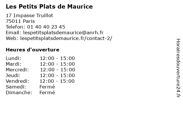 1 Les Petits Bidons (Distance: 0,19 km) 27 rue du chemin vert, 75011 Paris bidons, fabricant, les, lessive, petits, poudre, écologique 2 Les Petits Vélos de Maurice (Distance: 0,20 km) 81 Boulevard Richard Lenoir, 75011 Paris accessoires, cycles, de, les, maurice, petits, pièces, rechange, réparation, vélos 3 Square Maurice-Gardette (Du 29 octobre au 28 février) (Distance: 0,35 km) 2 rue du Général-Blaise, 75011 Paris 28, 29, au, du, février, gardette, jardin, maurice, octobre, parc, square 4 Square Maurice-Gardette (Du 01 au 24 mars) (Distance: 0,35 km) 2 rue du Général-Blaise, 75011 Paris 01, 24, au, du, gardette, jardin, mars, maurice, parc, square 5 Square Maurice-Gardette (Du 25 mars au 29 avril et septembre) (Distance: 0,35 km) 2 rue du Général-Blaise, 75011 Paris 25, 29, au, avril, du, et, gardette, jardin, mars, maurice, parc, septembre, square 6 Square Maurice-Gardette (Du 30 avril au 31 août) (Distance: 0,35 km) 2 rue du Général-Blaise, 75011 Paris 30, 31, août, au, avril, du, gardette, jardin, maurice, parc, square |