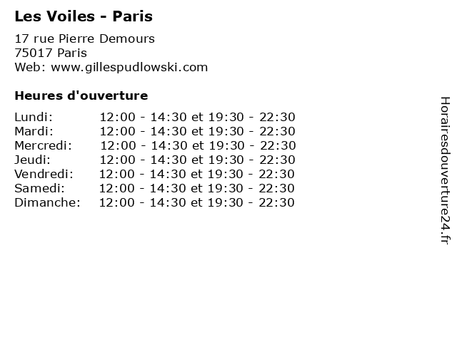 | Mardi | 12:00-14:30 et 19:30-22:30 |