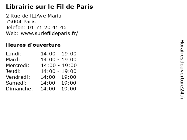 | Lundi | 14:00-19:00 |